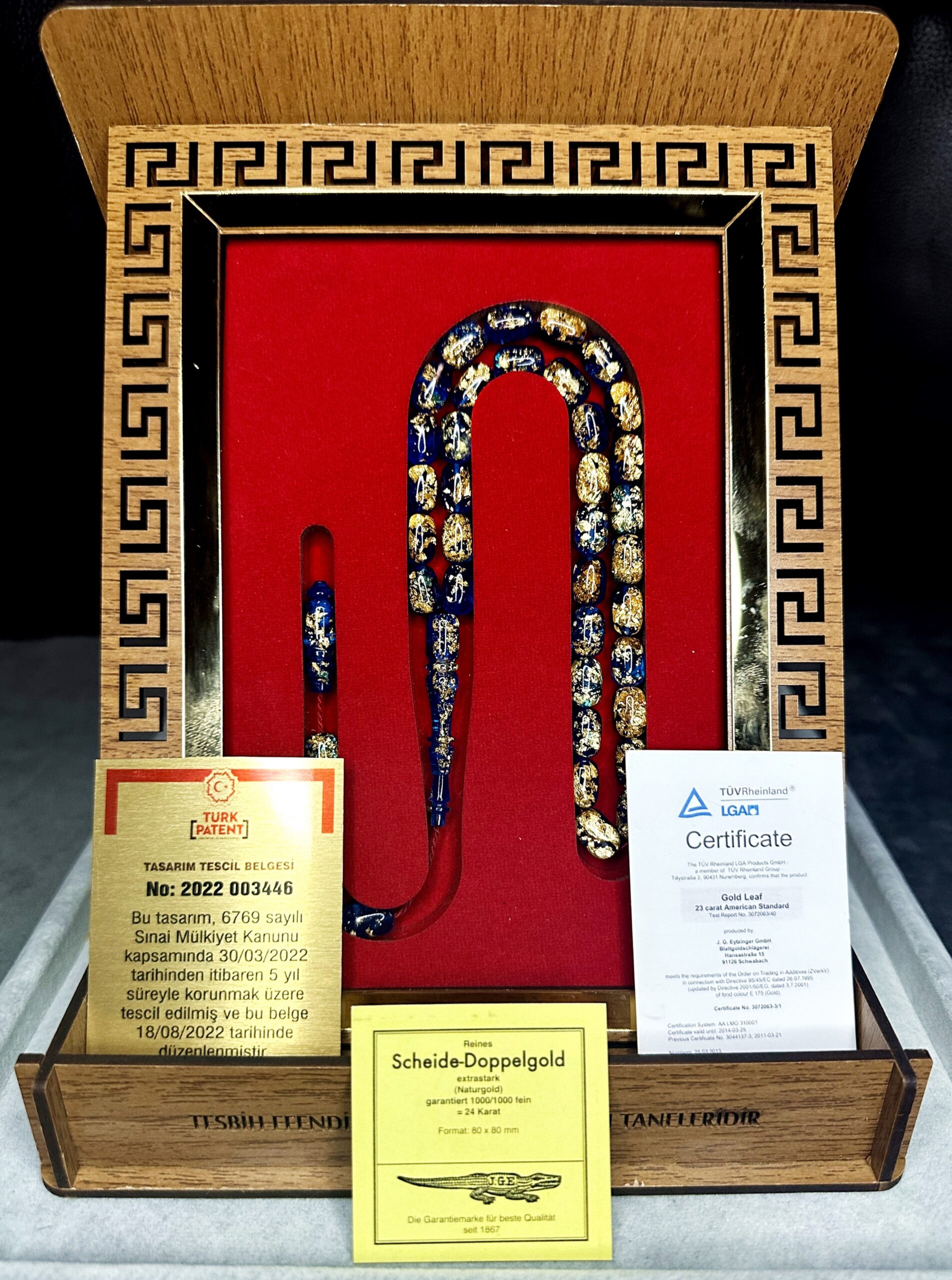 “24 Ayar Altın Parçacıklı Uçak Camı Golden Rosary Özel Tasarım Ahşap Kutulu Tesbih” için yorum yapan ilk kişi siz olun Yanıtı iptal et