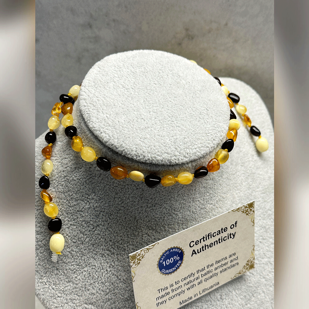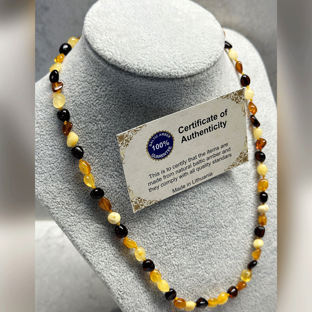 Çocuk Şifa Kaynağı Orijinal Sertifikalı Karışık Renkli Damla Kehribar Çocuk Kolyesi