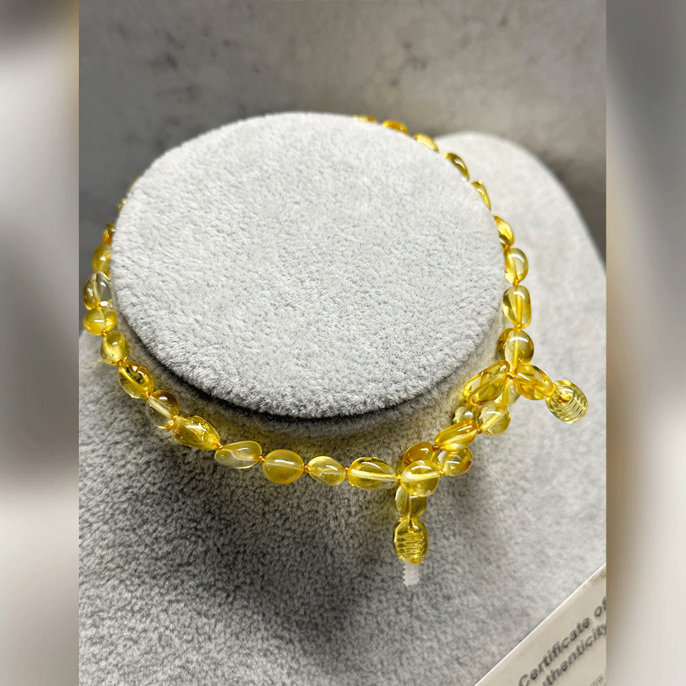 Bebek Şifa Kaynağı Orijinal Sertifikalı Sarı Damla Kehribar Bebek Kolyesi