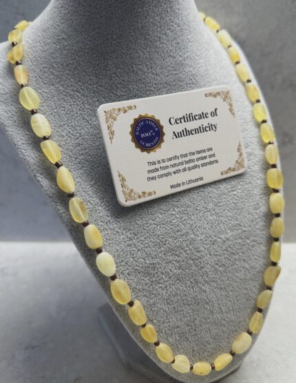 Kehribar kolyeler, yuvarlak ve yassı kesim olmak üzere iki çeşittir.